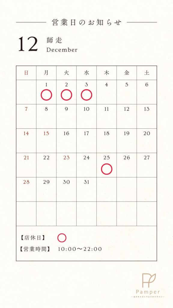 2025年12月の営業日は下記の通りです。